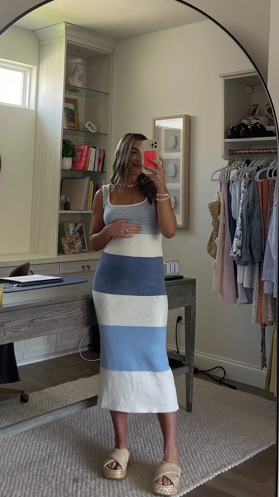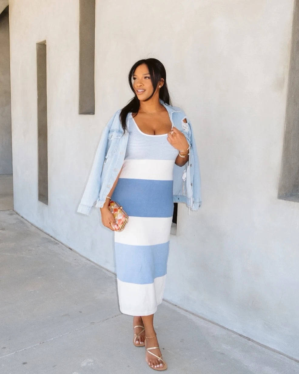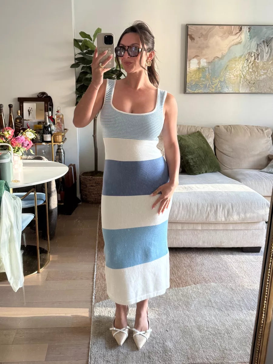 Okay, but the coastal vibes are UNREAL. Got stopped three times at brunch. The knit hugs perfectly without being tight, and the midi length is chef's kiss. Pairs with literally everything.